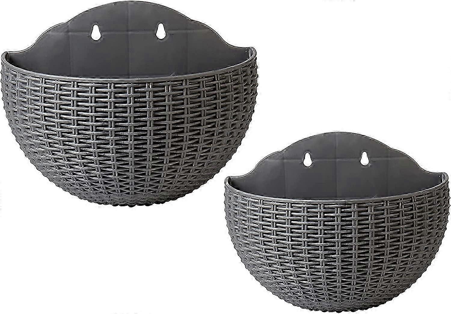Specifications: Material: PP Plastic,it environmentally friendly, can withstand the sun and rain and not easy to fade Color: Coffee,White,Black,Grey,Brick Red,Dark Green Size: approx. Small basket:21*16.5*9.5cm/8.3*6.5*3.7in Large basket:26*20.5*11.8cm/10.2*8*4.6in Highlights:Imitated Rattan Woven Design,Water Barrier Features: Perfect Shape Creative Semicircular Resin Imitation Rattan Wall Hanging Flower Plant Pot,90 degrees back section side can matched closely to the wall. Lightweight and Weatherproof - Made of high quality weatherproof PP material, with perfect light weight feature for wall-mounted. Automatic Irrigation System Come with a detachable water-storage bottom plate to provide extra space to reserve water, to realize self-watering and reduce watering frequency. The drainage hole drains off excess rainwater to prevent root rot when installed outdoors.No more worry there will be no people to take care of your lovely plants. Decorate Your Garden Our hanging baskets are suitable for growing succulents, herbs, vegetables, hanging plants, etc. They look super beautiful when hung on walls or fences. Wall-mounted flower pots are suitable for porches, lawns, gardens, decks, balconies, and can also be used for home furnishings, home gardening, wedding decorations, and greening projects. Package Include 2 * Plant Pot 4 * S-shaped Hooks 4 * Expansion Screws Please Note: Actual color might be slightly different from the image due to different monitors and light effect. Please allow slight measurement deviations due to manual measurements. Any question,please feel free to contact me.Free Return & Exchange within 120-Day.Thanks for your cooperation! Creative DesignThese modern rattan wall-mounted semicircular flower pots are designed with classic rattan texture.Be made of high-quality PP resin material.It is very durable, corrosion-resistant,environmentally friendly and has strong air permeability, which is conducive to the growth of plant roots.Show your cute plants, such as cacti,vines, succulents or other small plants.Provide your family and neighbors with a fresh and natural experience and enjoy a leisurely life. Perfect CombinationOur package includes two flower pots, one large and one small. Large size: 21*16.5*9.5 cm/8.27*6.50*3.74 inches. Small size: 26*20.5*11.8cm/10.24*8*4.65 inches. In addition, the flower pot is equipped with 2 S-shaped hooks and expansion screws, which can be easily hung in your garden, porch, balcony, kitchen or anywhere around your home or office to meet any of your planting needs. Drainage HoleInstall an anti-overflow plug at the bottom of the flower pot to prevent water loss and keep the plant's water longer. When it is raining, when using it outdoors, please remove the plug to prevent the roots from rot due to excessive rainwater reserves. Double-layer StructureThere is a permeable semicircular tray inside the decorative wall flowerpot to provide extra space for the plants to retain excessive moisture. Plants are planted in the upper layer of the pot, and the lower water storage area provides sufficient water for the plants. The water barrier can also prevent excessive accumulation of water and submerge the roots of plants to make them rot, playing a dual role. So the small flower pots form an automatic irrigation system. Installation MethodThere are three installation methods for this wall-mounted flowerpot for your choice. First, hang the S-shaped hook on the railing and hang the flower pot on the hook to complete the installation. Second, screw the two nails we provided into the wall, please pay attention to the distance between the two nails, and then hang the flower pot to complete the installation. Finally, you can use the sticker with hooks to stick the sticker Just hang the flower pot on the wall.