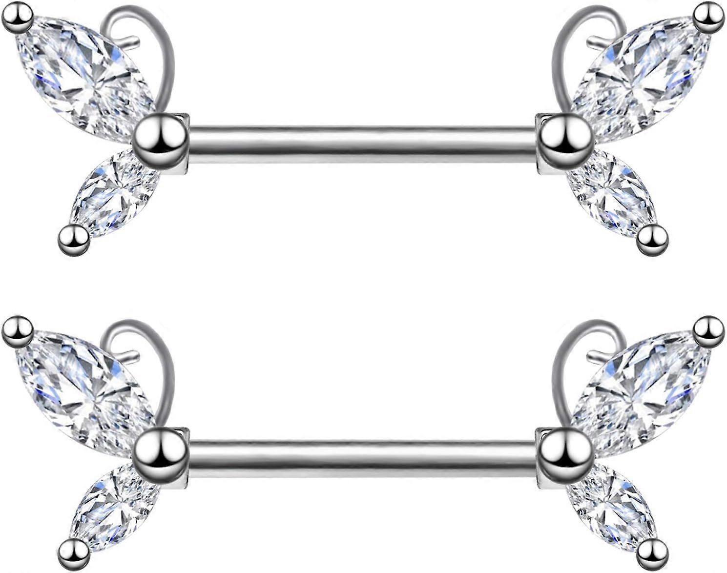 2PCS 14G 316L Stainless Steel Clear Nipple Rings Barbell Butterfly Nipple