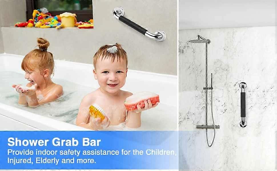 2PCS 18 Inch Shower Grab Bar Set Non Slip Silicone Stainless Steel Bathtub Handle for Bathroom Black