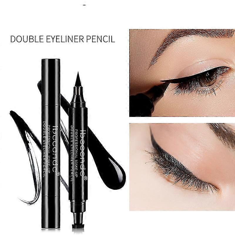 2pcs 2 In 1 Winged Cat Eye Stamp Dual Ended Black Liquid Eyeliner Felt-tip Eyeliner Pen