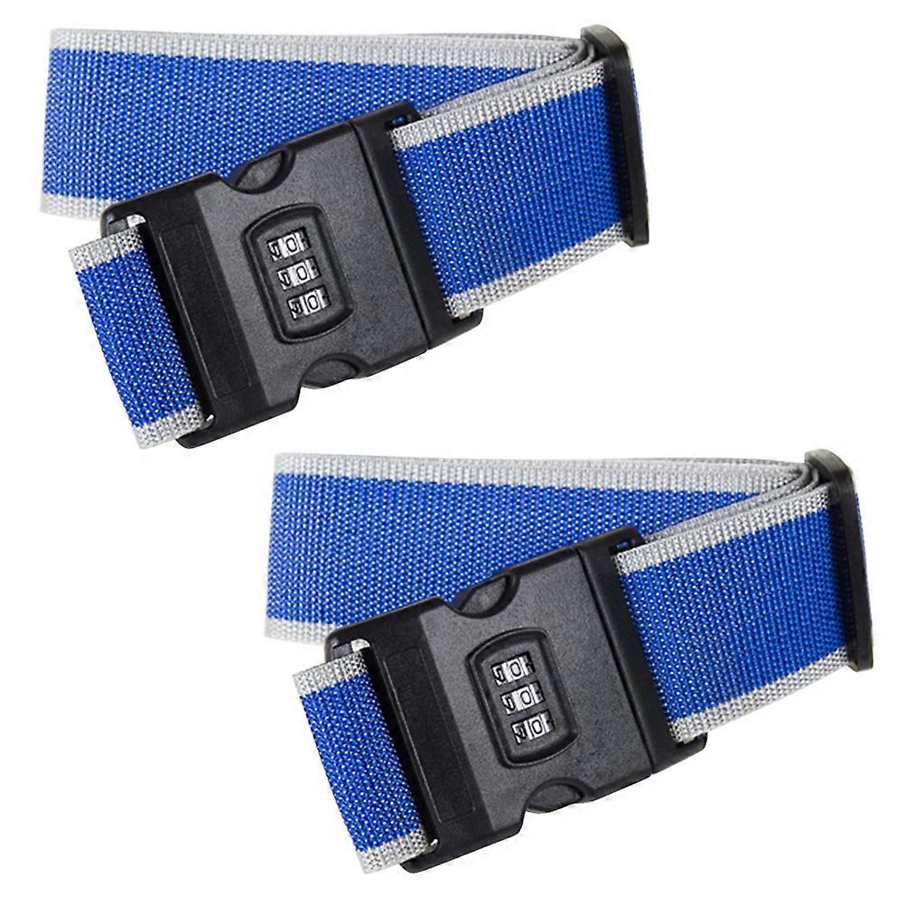 2PCS 2M Adjustable Luggage Straps Safety Suitcase Belts Travel Bag Accessories with Combination Lock (Blue and Grey)