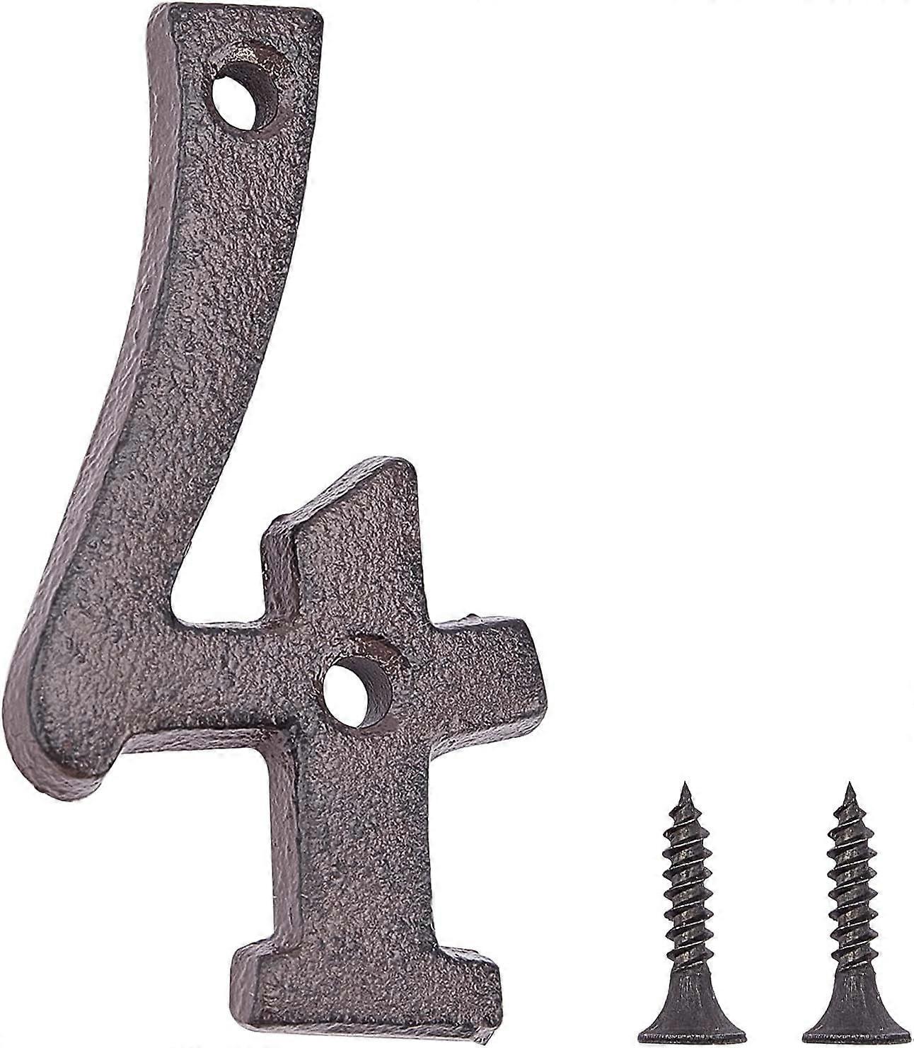 2Pcs 3 Inch Cast Iron House Numbers Metal Home Address Numbers Mailbox Numbers Door Numbers for Outside with Screws Number 4 DIY