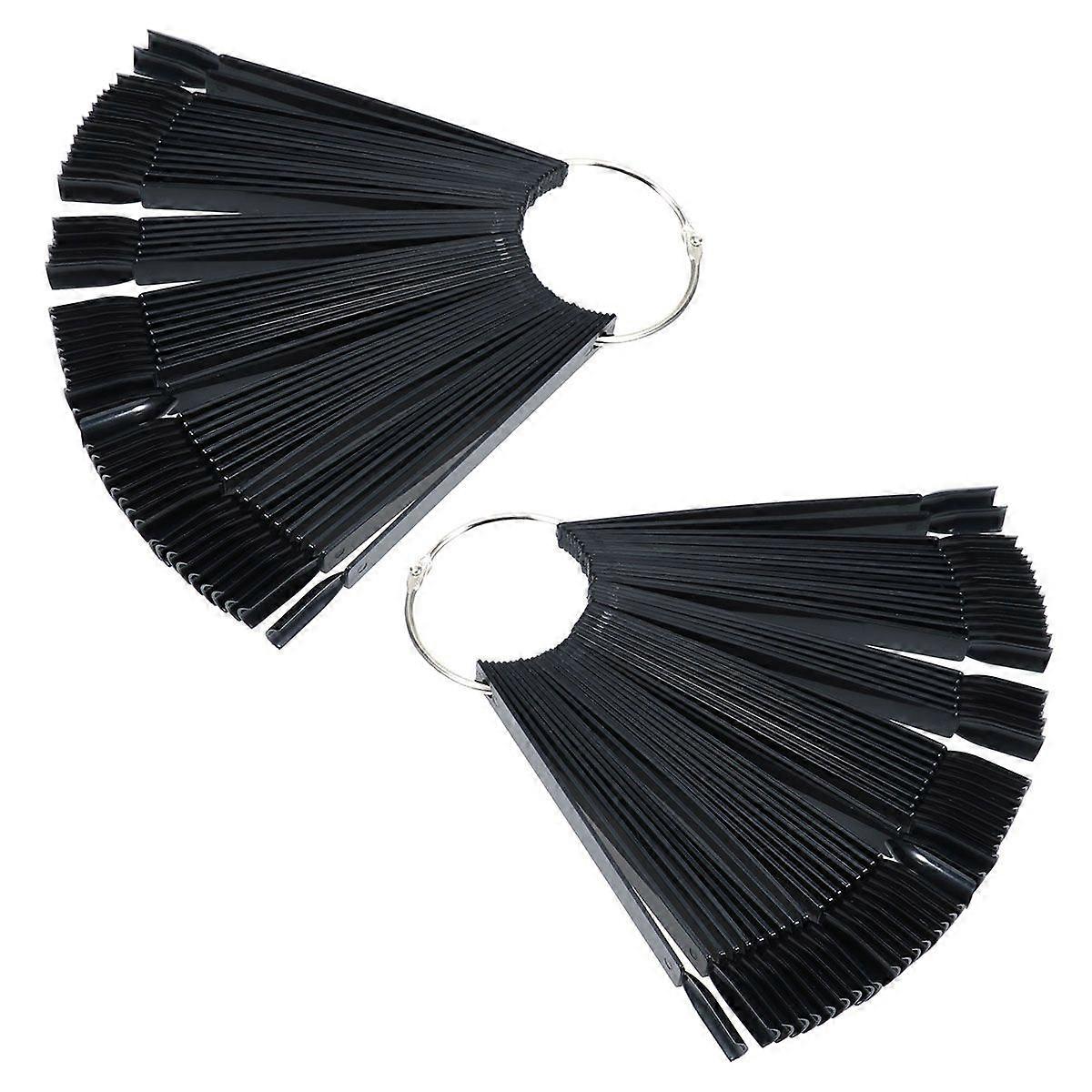 2pcs 50 Sheet In 1pc Fan Shaped Nail Polish Gel False Nail Tips Colored Display Practice Sticks Nail Nail Art Display Shelf Polish (Black)