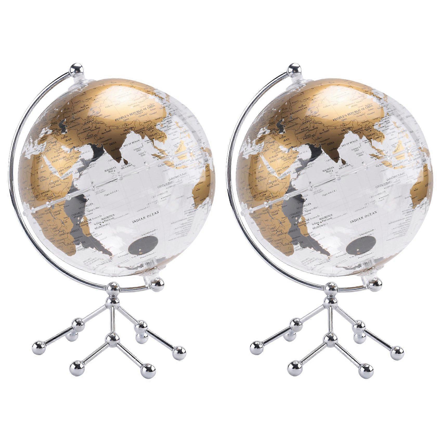 2pcs 8Inch World Globe,Illuminated World Globe with Metal Stand,Educational Interactive Globe, LED Globe Lamp