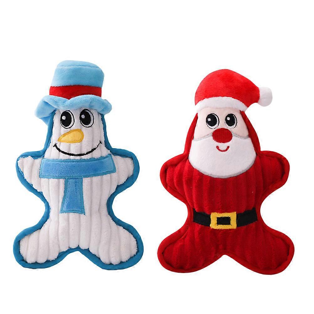 2PCS BB Sound Toys Pet Bite Chew Doll Plush Playing Toy Pet Supplies (Santa Claus, Snowman)