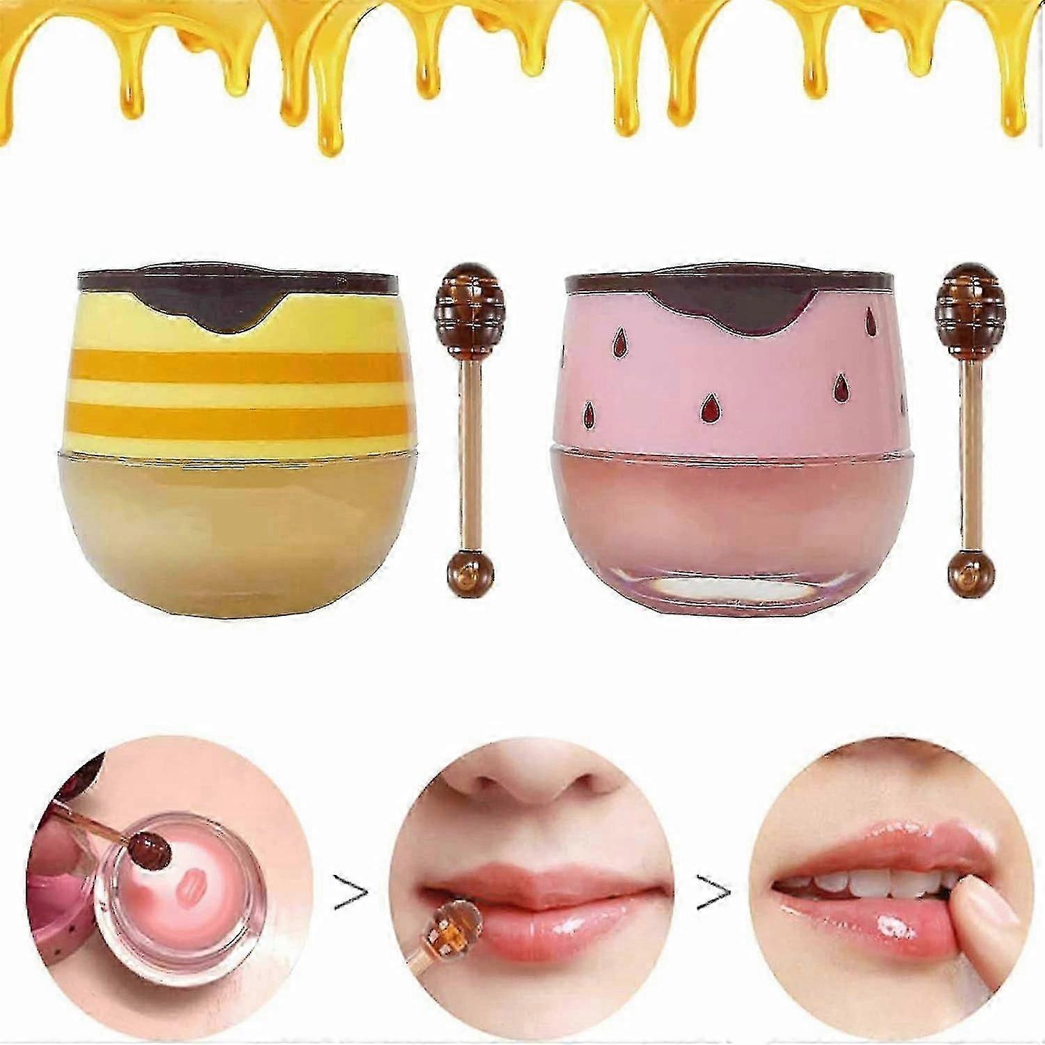 2PCS Bee Lip Balm Honey Pot, Honey & Strawberry Propolis Moisturizing, Hydrating & Prevention Dry and Cracked Lip Scrubs Exfoliator
