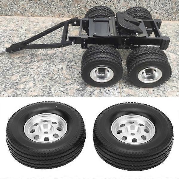 2PCS CNC Metal Wheel Rims Hubs and Rubber Tires Kit for Tamiya Tractor Truck 1/14 RC Car