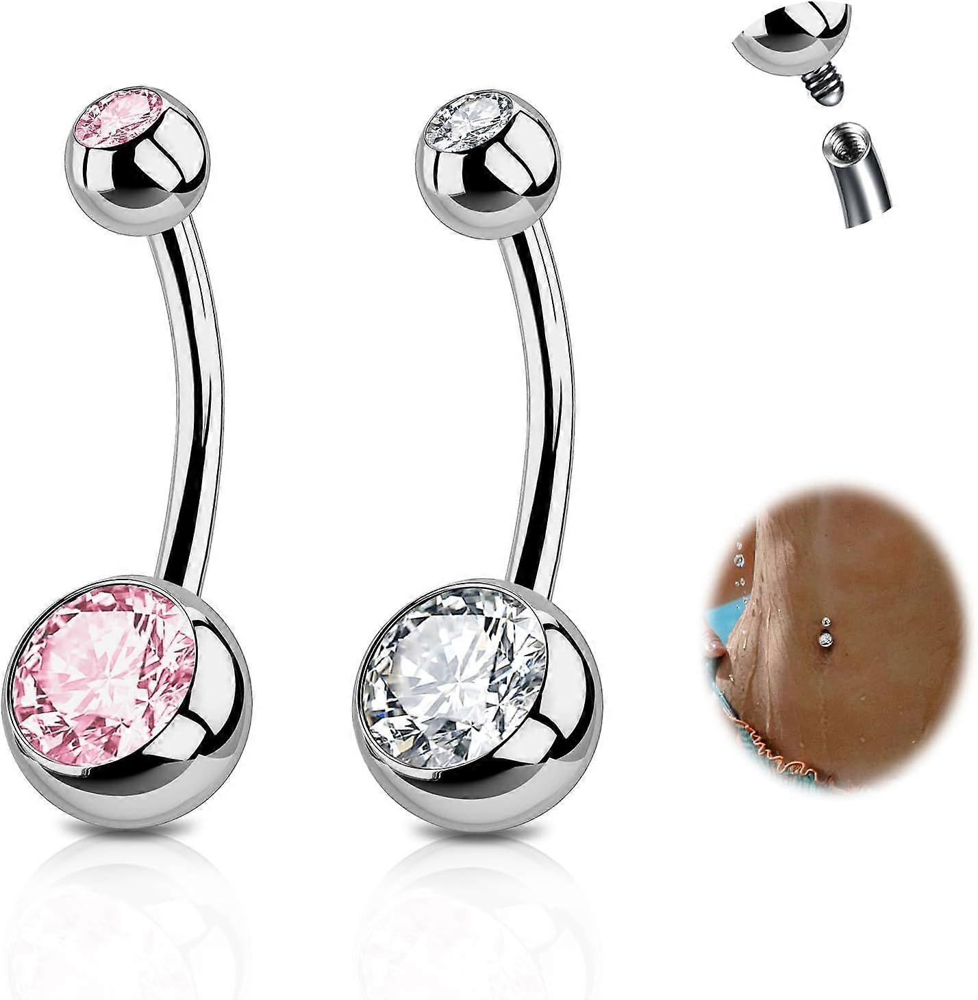 2PCS G23 Titanium Belly Button Rings 14G with Sparkling Cubic Zirconia Internally Threaded
