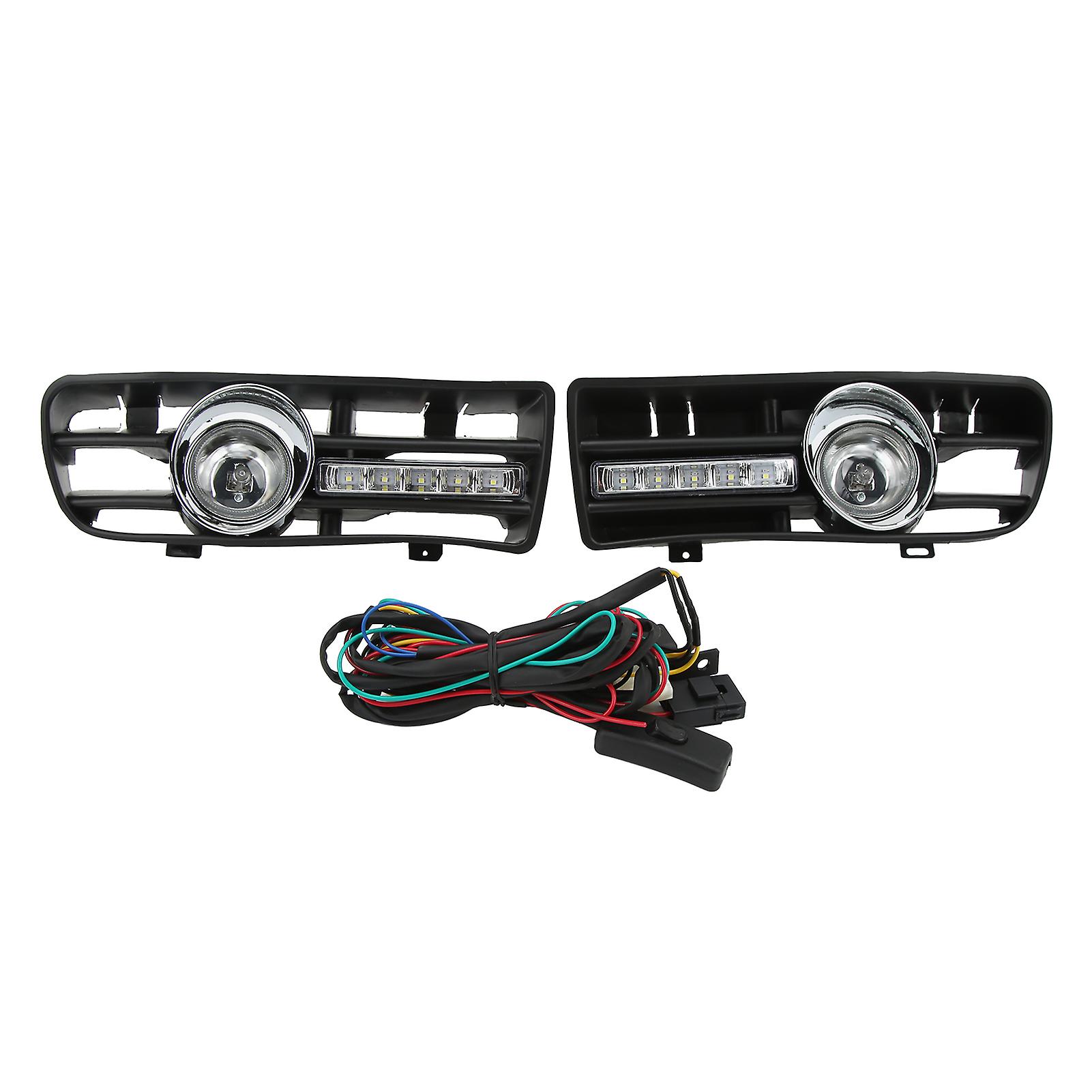 2Pcs H3 Daytime Running Light Grilles With LED DRL Lamp for 1997‑2006 TDI MK4