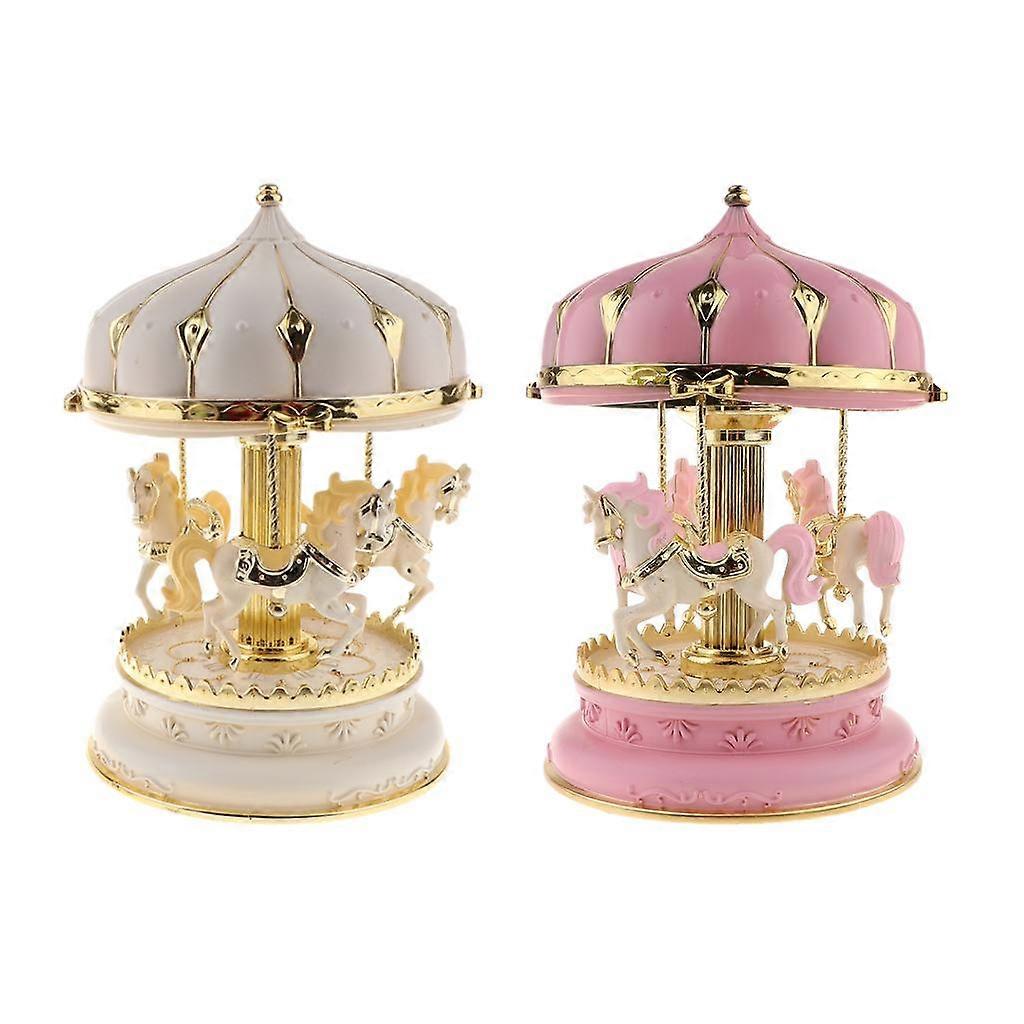 2pcs LED 3 Horses Carousel Music Box Toy Musical Girl Boy Kids Birthday Gift