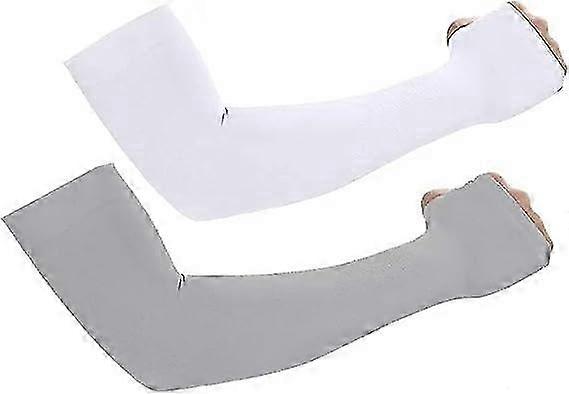 2pcs UPF 50+ Arm Warmers, Anti-UV Breathable Sleeves for Men & Women, White & Gray