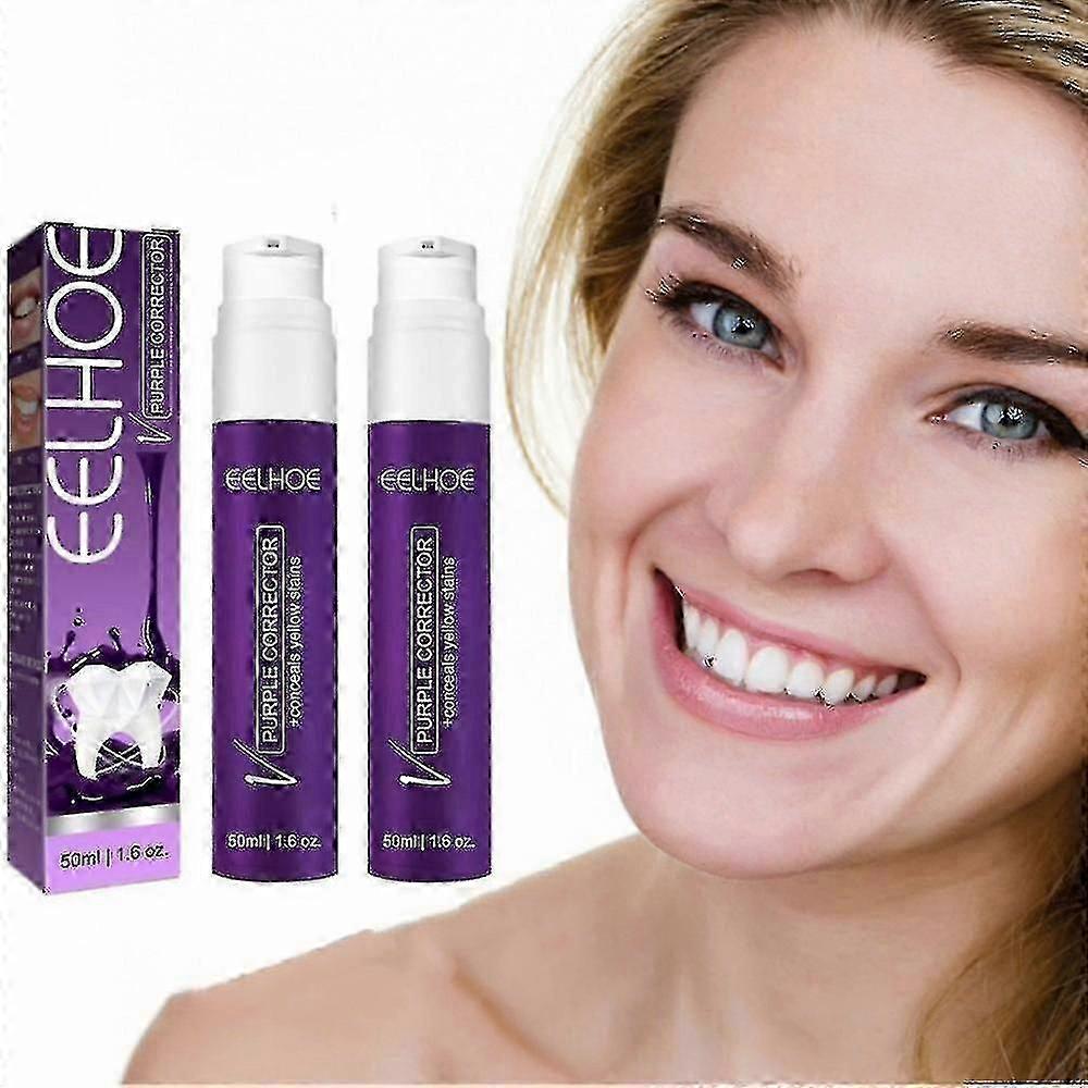 2pcs V34 Purple Tooth Whitening Toothpaste 50ml Stain Removal Reduce Yellowing