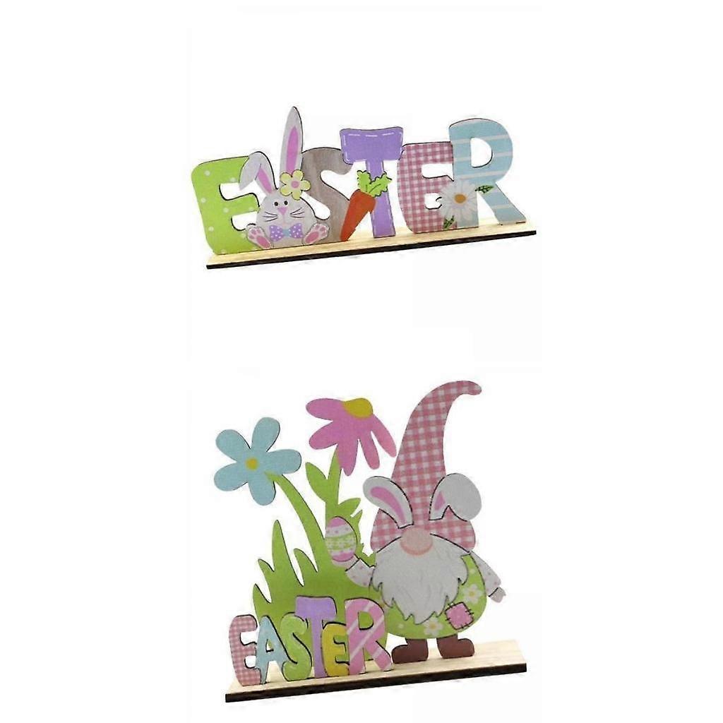 2pcs Easter Spring Wooden Ornament Desk Tabletop Figurine Toys Indoor