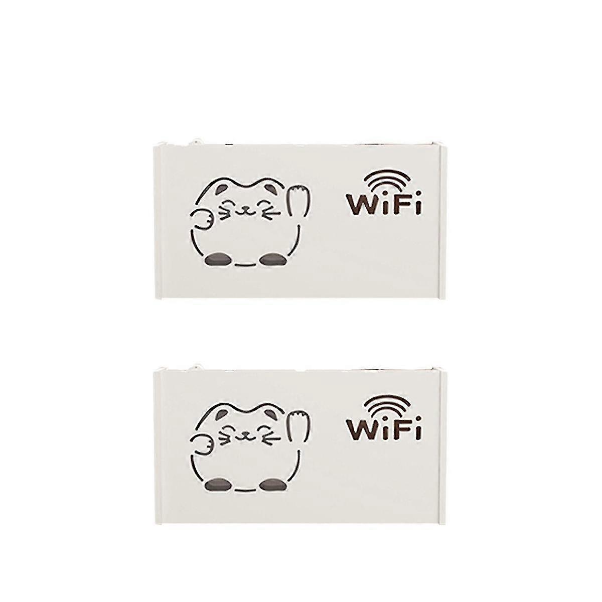 2pcswifi Router Storage Box Outlet Set Top Cable Wooden Case Wall Mount Power Strip Switch Hide She