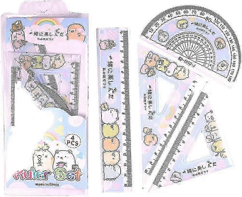 2set Kawaii Cartoon Straight Triangle Ruler Protractor Drafting Drawing School Office Supplies Student Stationery