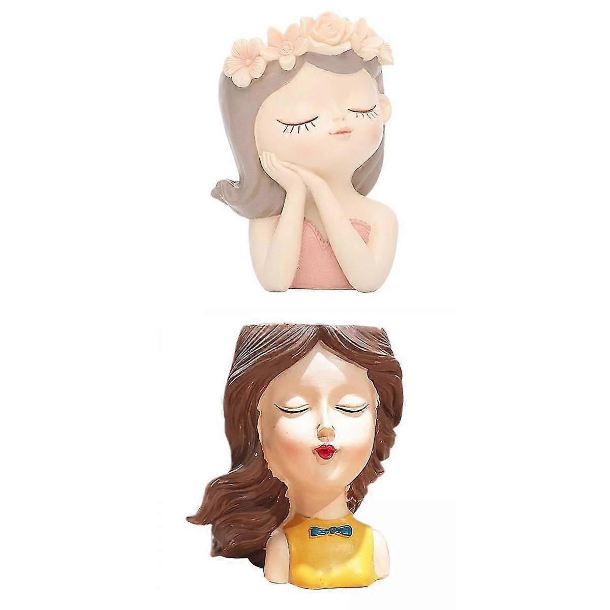 2x Cute Head Succulent Plant Container Bust Flower Pot Cactus Planter