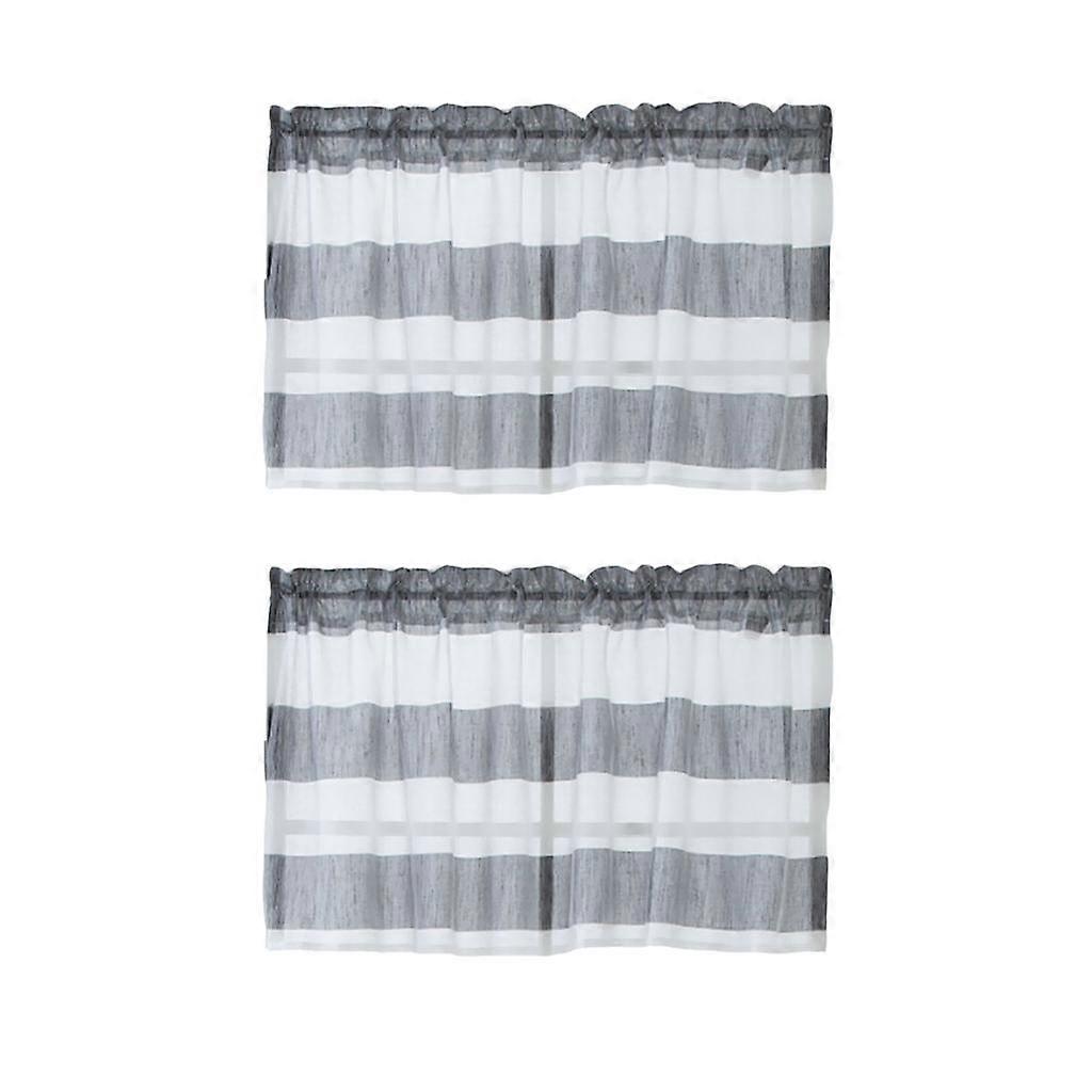 2xWindow Striped Short Valance Rod Pocket Curtains Kitchen Grey_ 74x60cm
