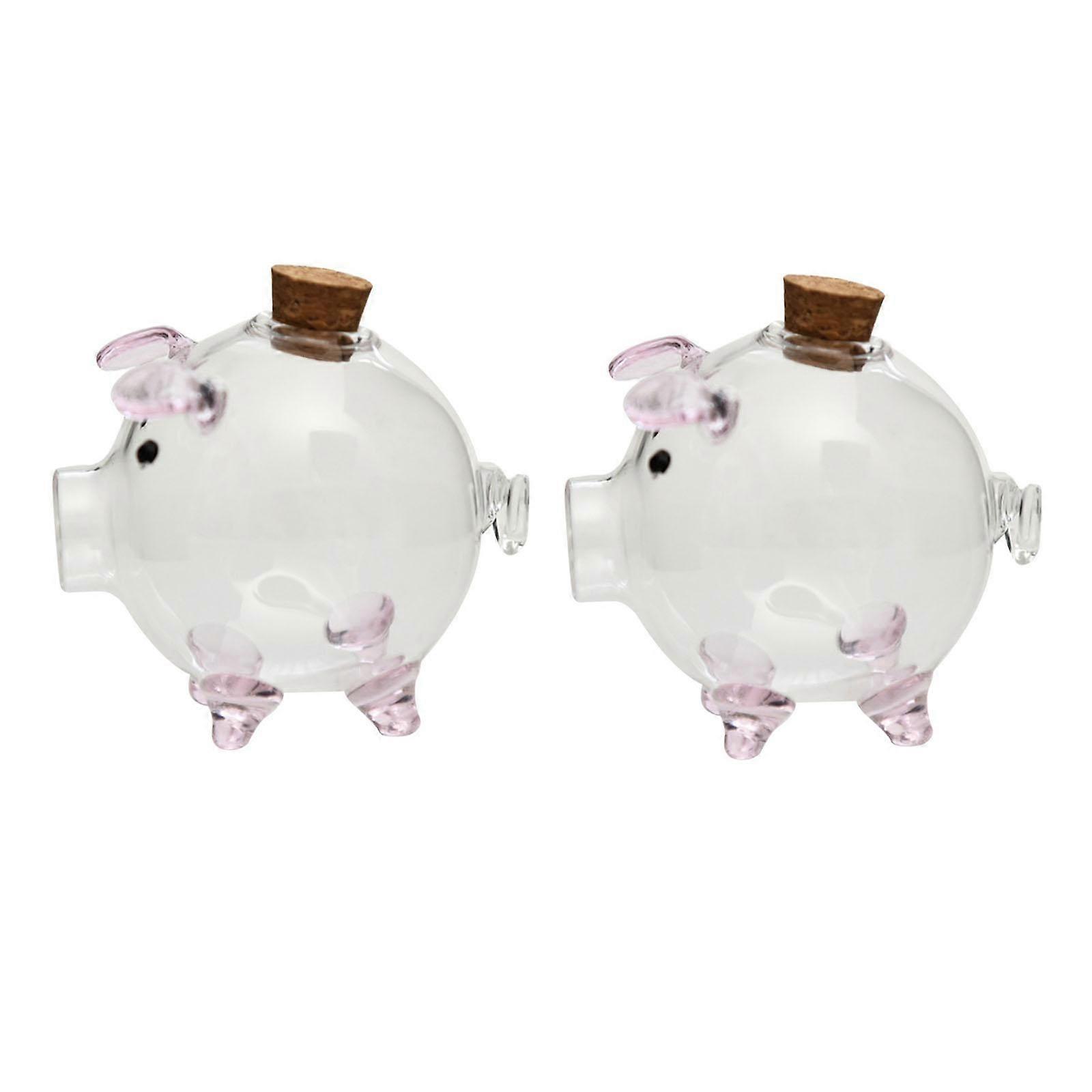 2x Glass Pig Figurine Piggy Bank Birthday Gift Decorative Statue Home Decoration