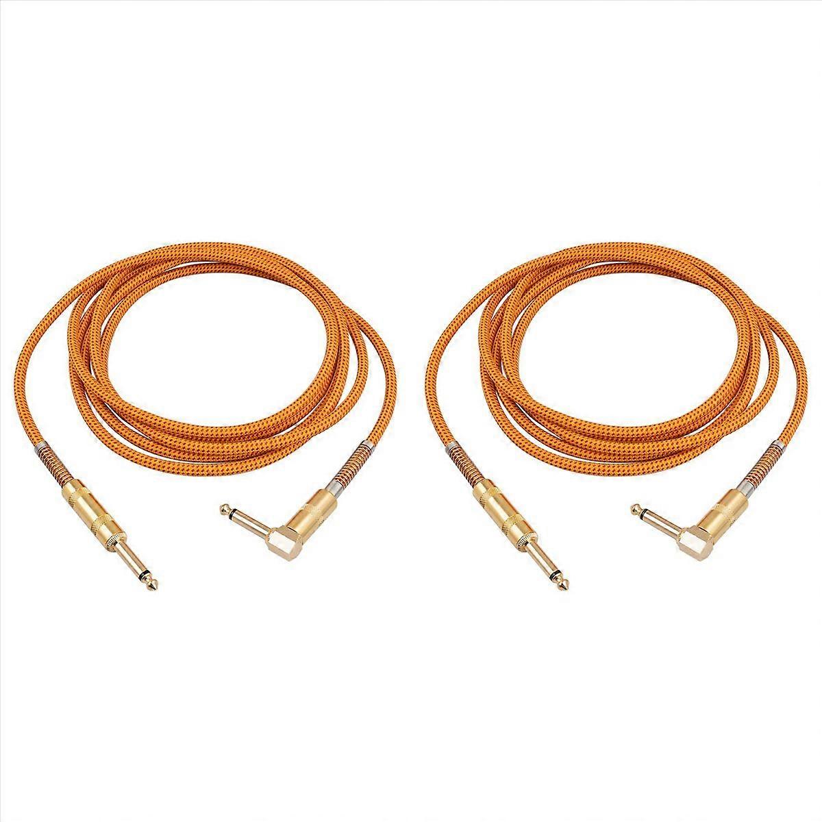 2X Guitar Instrument Cable 10FT Electric Instrument Bass AMP Cord 1/4 Inch Straight to Right Angle P