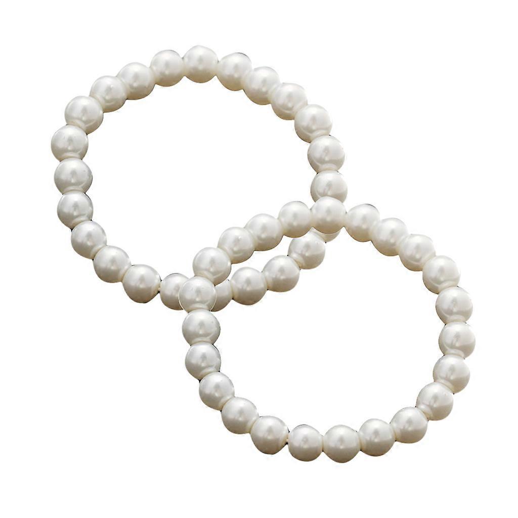 2x Classic Simple White Round Pearl Beaded Stretch Bracelets Imitation Pearls Elastic Bracelets Gift for Girlfriends