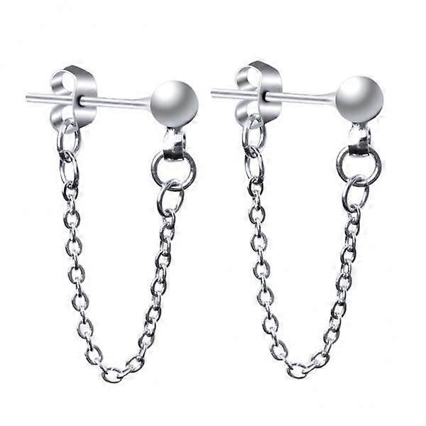 2X Stainless Steel Stud Earring with Tassel Chain Dangle Earring