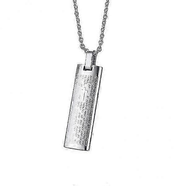 2xStainless Steel Carved Cross Lord's Prayer Dog Tag Pendant Necklace for Men