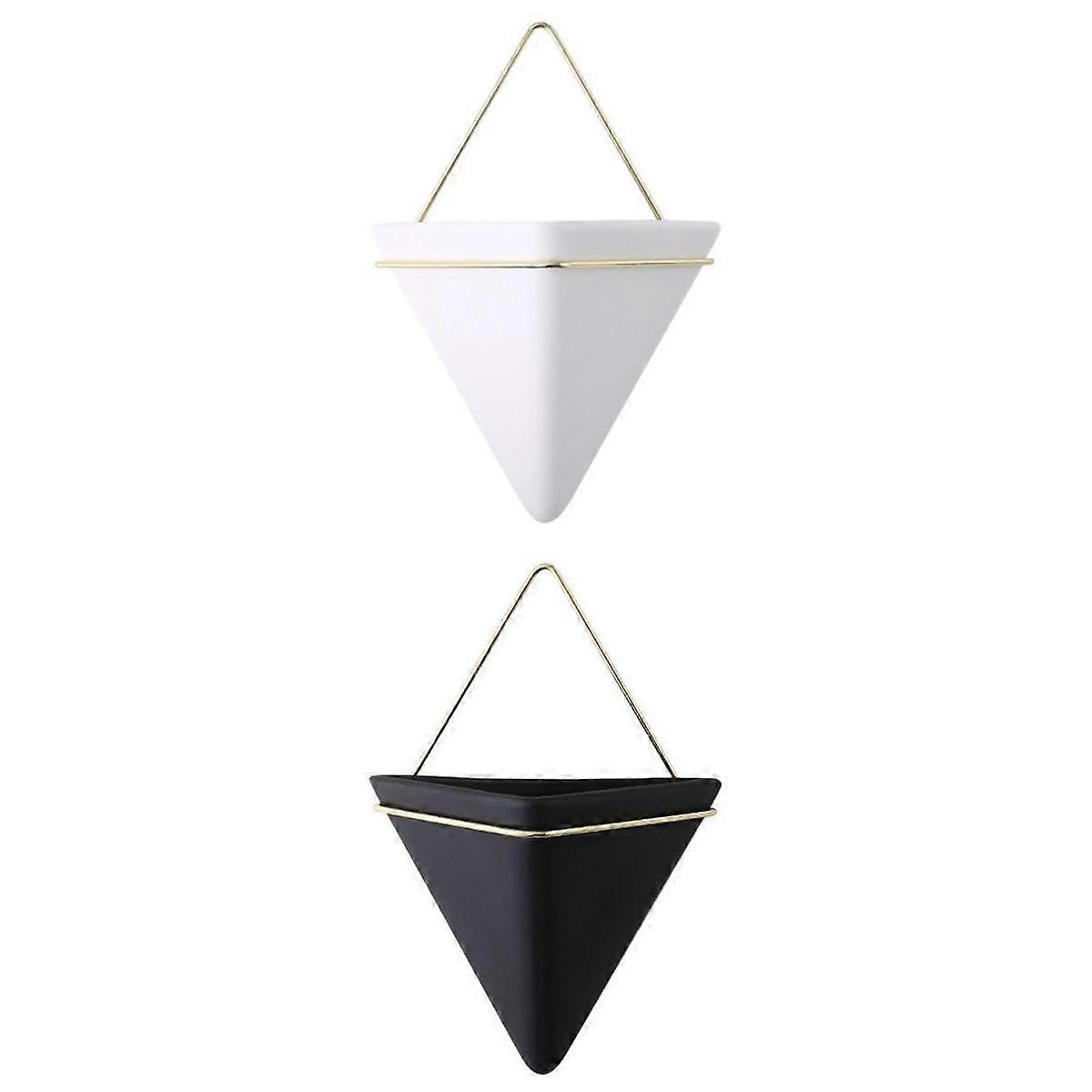 2x Triangle Wall Planter Wall Mounted Flower Pot Home Decor Black White L