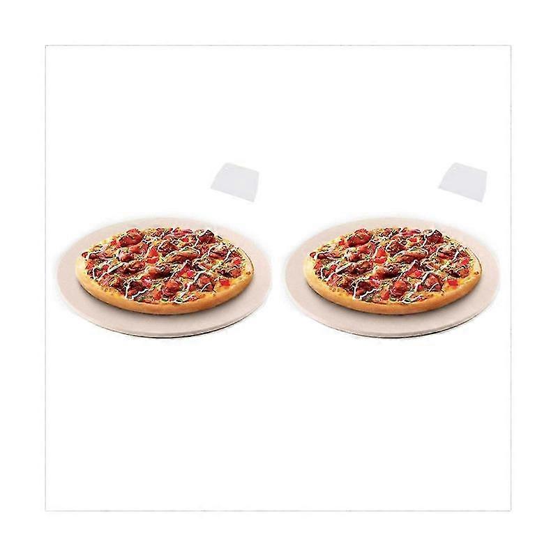 Pizza stone is incinerated and designed to withstand extreme temperatures, so you can cook like a professional chef, it does not include any harmful substances or smells, and safe<br> The round pizza stone is not only used for making pizza, but also for baking , bread, , steak, grilled chicken, barbecue, etc., suitable for family gatherings, dinners or parties, can be directly used in the oven, gas stove or barbecue<br> Try baking in a traditional stone oven, specially designed to provide a better balance between evenly distributed heat and insulation. Simple operation, making food delicious and healthy<br> size:Diameter 26.8cm<br> Material:Cordierite<br> colour:creamy-white(Partial to white)<br> Package Contents:<br> 2 x Pizza Stone<br> 2 x Scraper<br> Only the above package content, other products are not included.<br> Note: Light reflection and different displays may cause the color of the item in the picture a little different from the real thing. The measurement allowed error is +/- 1-3cm.