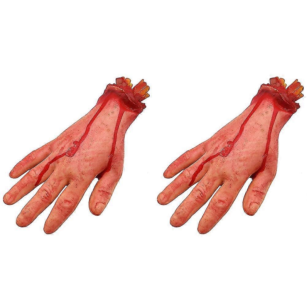 2x Bloody Horror Scary Halloween Prop Fake Severed Life Size Arm Hand House Scary Bloody