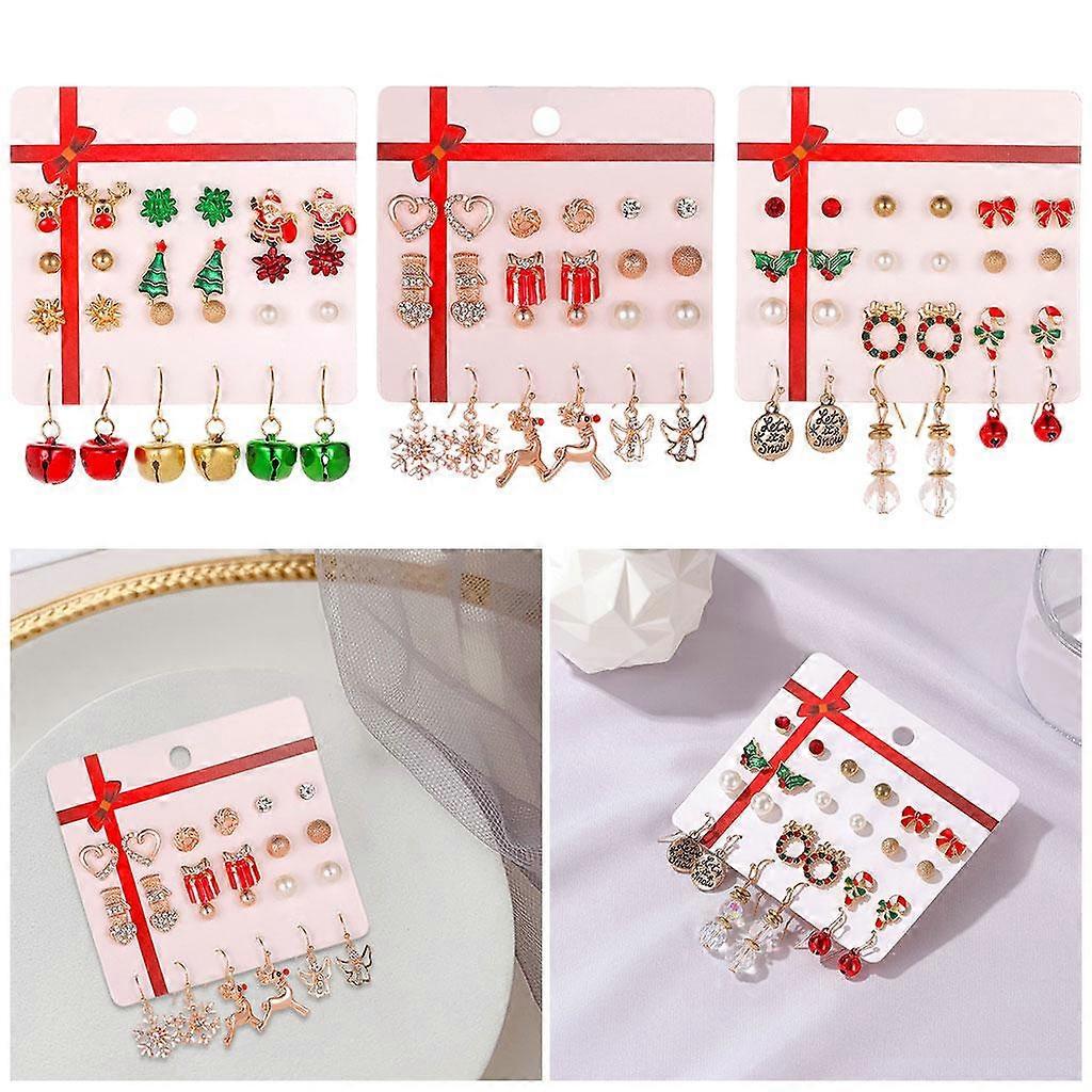 2x Fashion Earrings Reindeer Gift Set Hoop Snowflake for Xmas Party Friend Bowknot