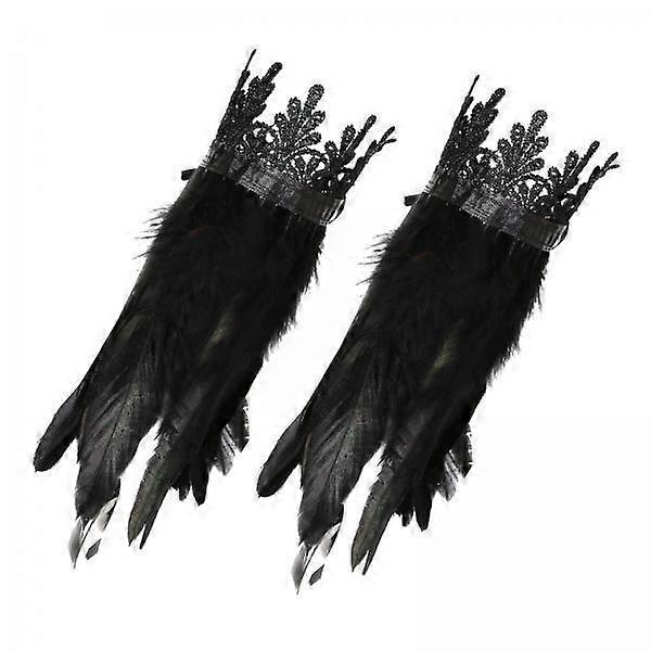 2x Faux Fashion Black Feather Shoulder Wrap Cape Shrug Tie Shawl Sleeves