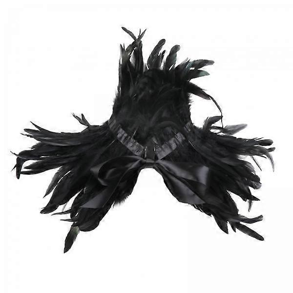 2x Feather Shrug Shawl Poncho Capelet Maleficent Neck Cover Black Feather Shawl