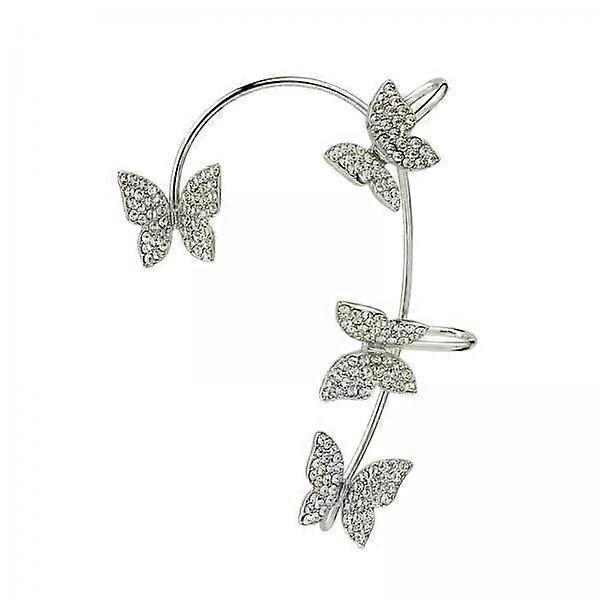 2x Bone Cuff Earring Butterfly French Style Non-Piercing Sparkling Ear Cuff Clip
