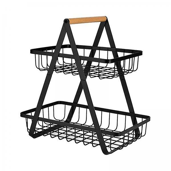 2xPortable Bread Basket Detachable 2-tier Fruit Holder Storage Basket Black