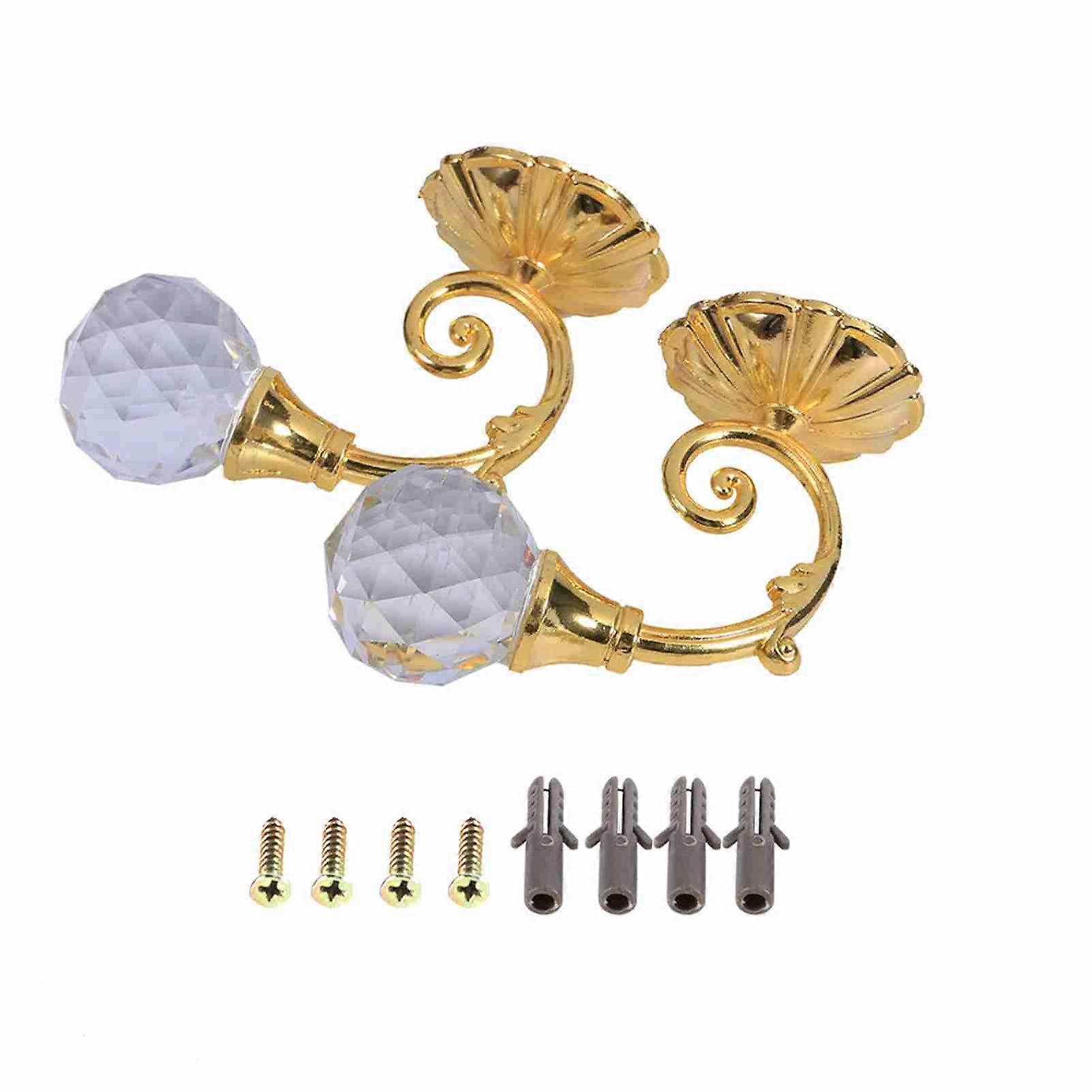 2x Metal Crystal Glass Curtain Holdback Wall Window Drapery Tie Back Hooks Hanger Holder Gold