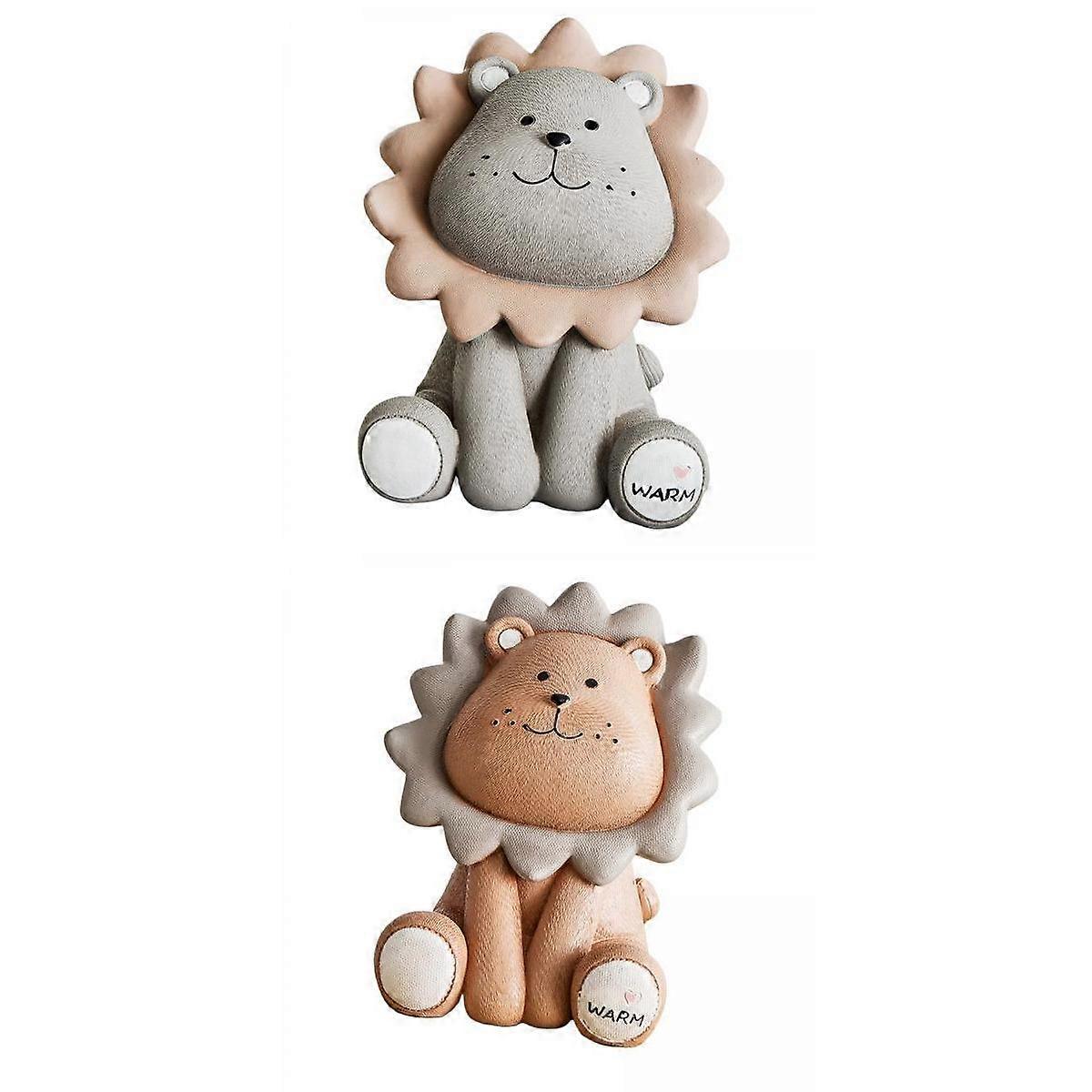 2x Lion Piggy Bank Savings Box Decoration Coins Figures for Birthday