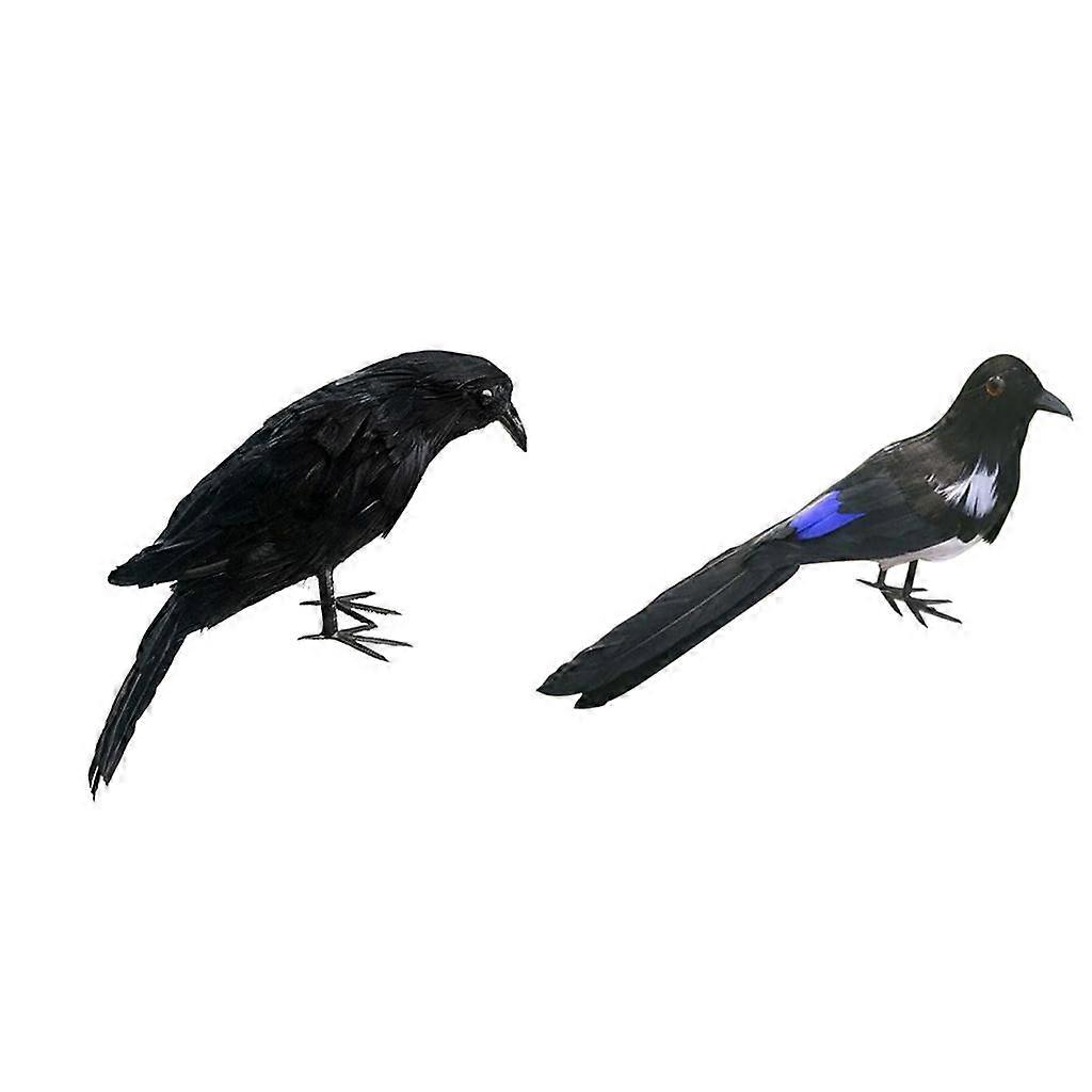2x Artificial Realistic Raven Magpie Bird for Garden Weding Halloween Decor