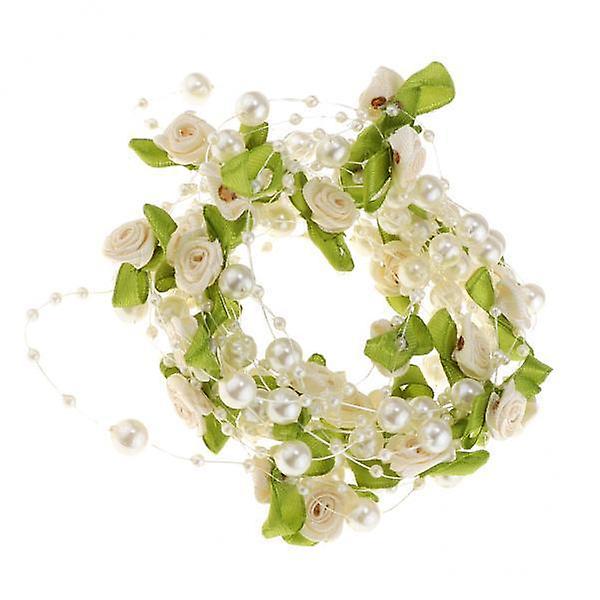 2xArtificial Pearls Bead Flower Leaf String Garland Wedding Venue Decor Beige