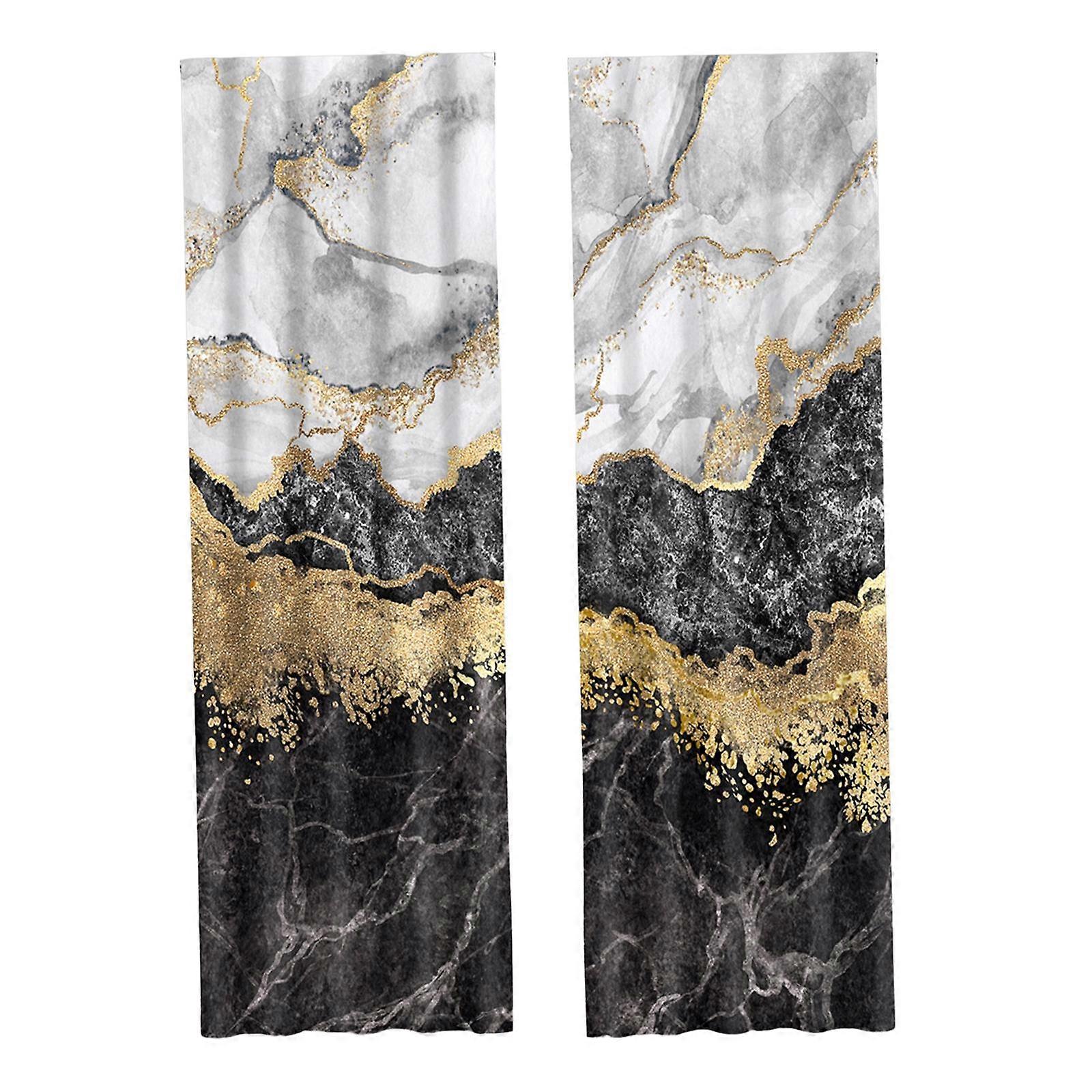 2x Marble Pattern Blackout Curtains Modern Drapes for Nursery, Window, Cafe