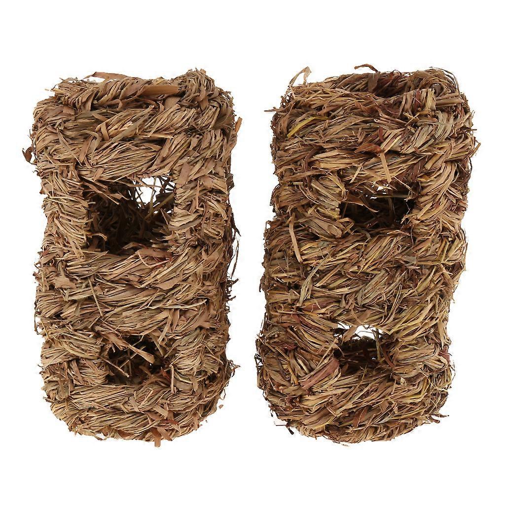 2x Small Animal Woven Grass Hut Bed House Straw Grass Hamster Nest Cage