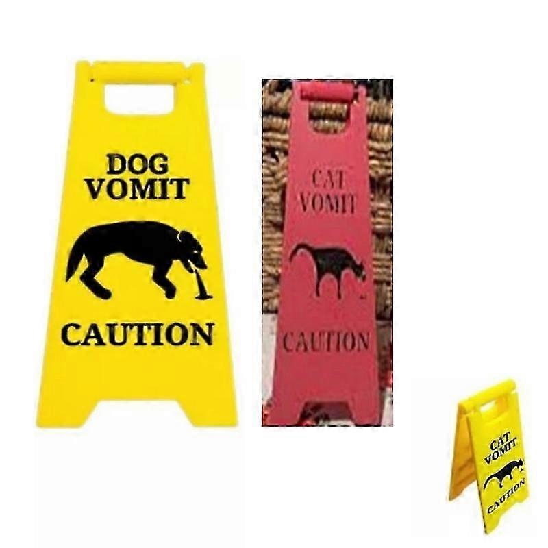 2x Funny Cat Vomit Sign Bright Yellow Gift Dog Vomit Sign Yard Signs