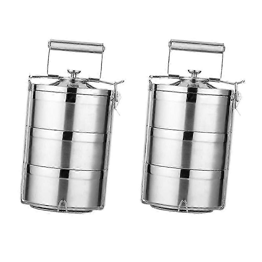 2x Stainless Steel Thermal Insulated Stackable Lunch Bento Box Tiffin 3 Tier hr