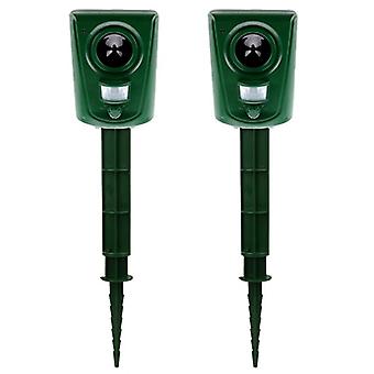 Effective and Safe: The best cat repellents can effectively repel common animals(birds, foxes, dogs, squirrels, rodents, etc.), through using high-frequency soundwaves to irritate, forcing them to look for other comfortable areas. And it's a safe and humane way to stop cats using your garden as a toilet. This bird scarer's sensitivity can be adjusted from weak to strong. For the best result, set the dial to the maximum when it works is suggested.Ultrasound and PIR Sensor: When unwanted animals enter the PIR sensor range, the sound waves and bright red light activate. The ultrasonic wave by changing frequency constantly deters unwelcome wild animals, keeping them from messing in your garden.Convenient and Battery Powered: Compared with solar energy, batteries can be more convenient. It can work well in virtually all weather conditions. Not just on sunny days. After setting up, you can leave them working outdoor without worrying about it. Batteries are not supplied.Wide Detection Range: The passive infrafed sensor has an angle of up to 110 degrees, a detection range of up to 8 meters to detect. Its large detection area range is good to get rid of wild animals away from your garden, yard, field, farm.Easy to Use: The cat deterrent is easy to install by pluging in the earth using the stake supplied, or it can be screwed to a wall or fence. Light weight and simple design makes it easy to move. In addition, please ensure placing the fox deterrent where it can't miss the annoying animals.Battery Operated:Requires three AA batteries.(Batteries are not included. ) Batteries life depend on the number of times the device is activated. Generally, they last for 3-4 months.And the repeller can be widely used in all outdoor environments, such as gardens, yards, terraces, garages, driveways, farms, ponds but also attics, etc.Caution:1. Do not stress or break the repeller when installing on hard ground. Prepare the ground for the ground stake to avoid damage to the unit is suggested.2. Do not immerse repeller in water.3. Do not cover-up the PIR sensor.Tips for using:1. Open the battery cover, put three AA batteries into battery tank correctly. Tighten the screws to prevent water from entering.2. Connect the Chaser head and the stake.3. Make sure the cat scarer's position is away from any regular movement area (such as public sidewalk). That will help you prolong the batteries life.4. Install the device to the direction that animals come from and keep the Chaser head roughly 9-10 inches above. Also you can hang on the wall or fence.5. Adjust the sensitivity to the position you need.6. Then you are good to go. The repeller is designed to be left "ON"continuously.size:11x6.8x45cmMaterial:ABScolour:GreenPackage Contents:2 x Animal Repeller2 x English manual2 Set X ScrewsOnly the above package content, other products are not included.Note: Light reflection and different displays may cause the color of the item in the picture a little different from the real thing. The measurement allowed error is +/- 1-3cm.