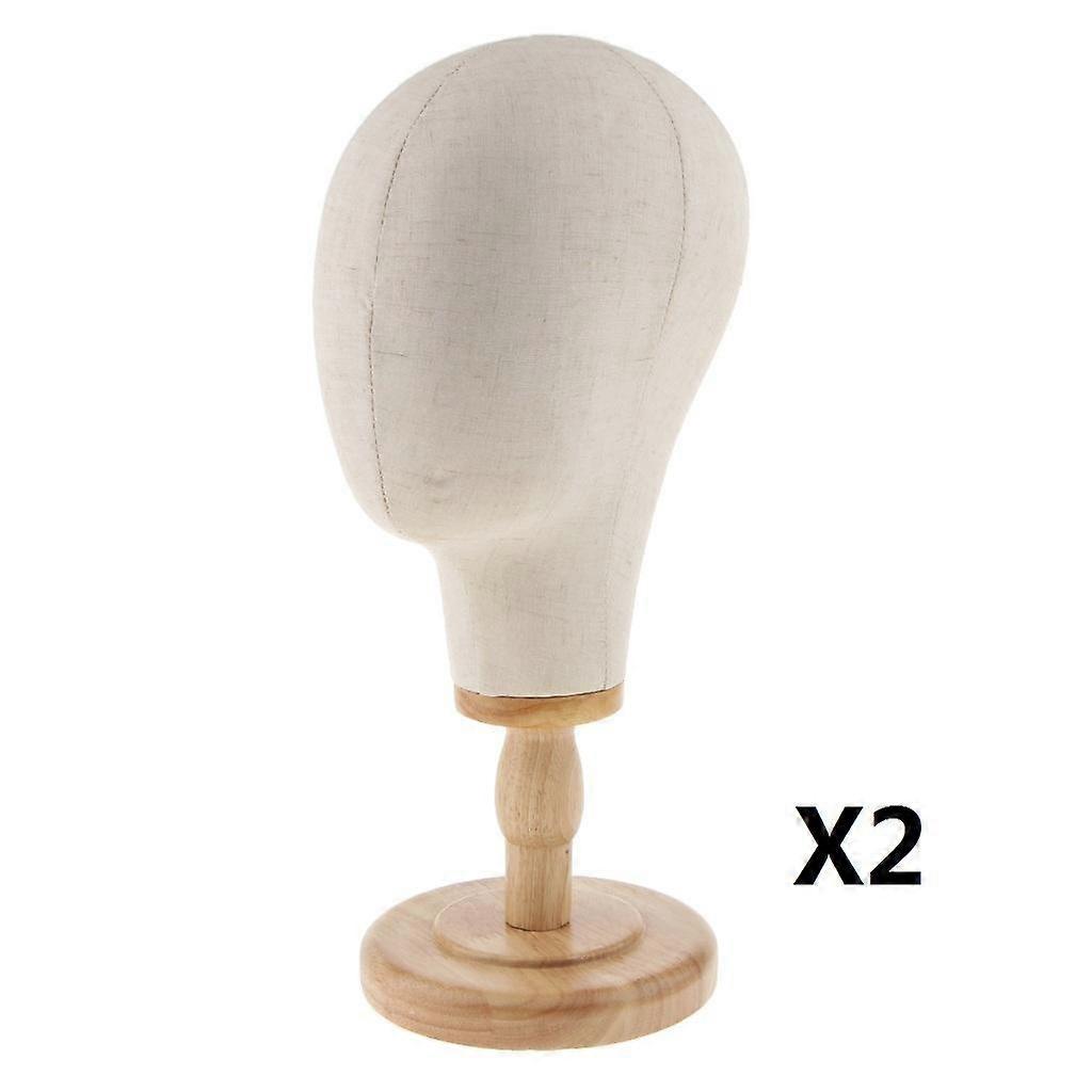 2x 21 inch Hair Wigs Extension Making Hats Caps Display Canvas Cork Block Mannequin Head Model + Detachable Wood Stand