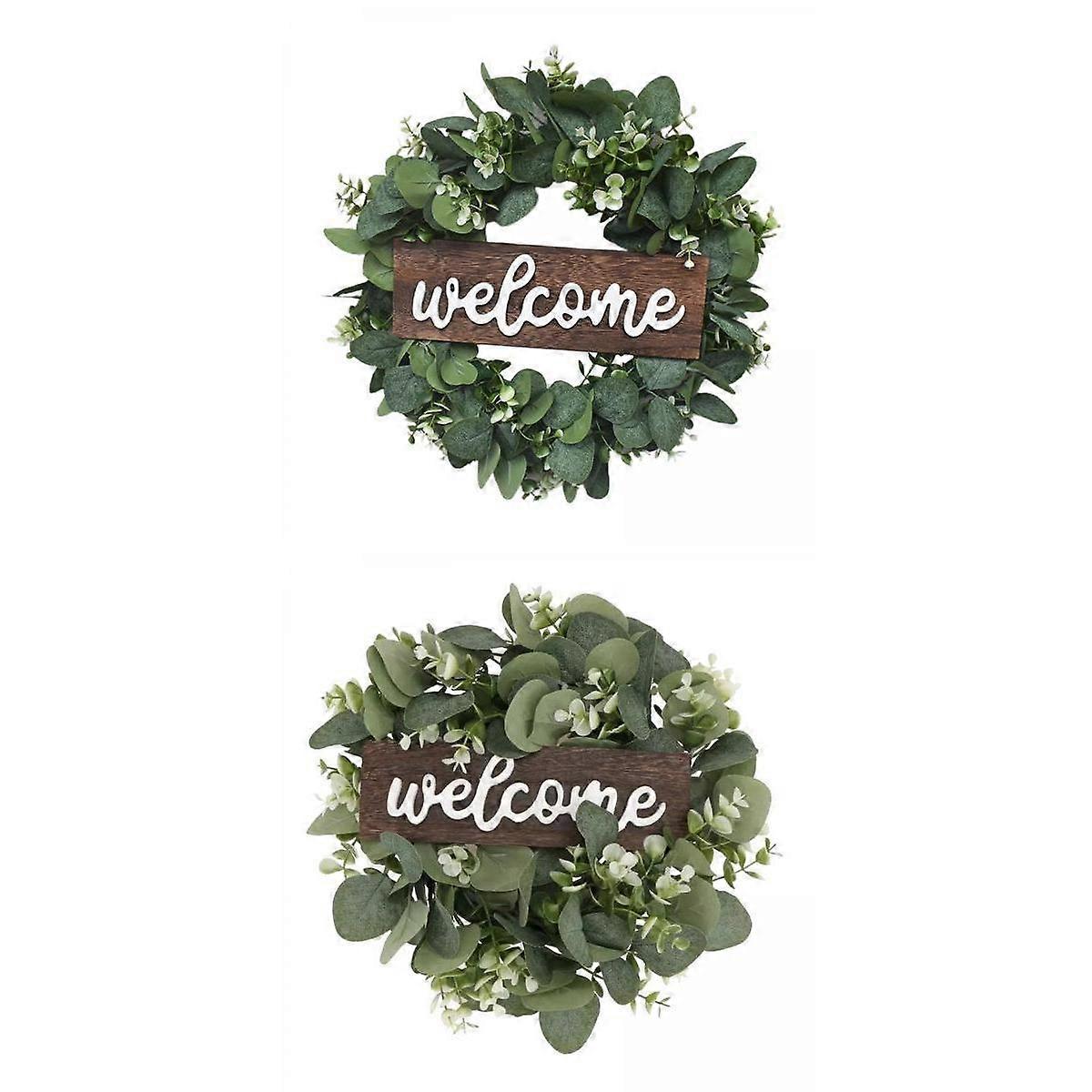 2x 33cm Welcone Sign Wreath Garland Front Door Window Hanging Decorations
