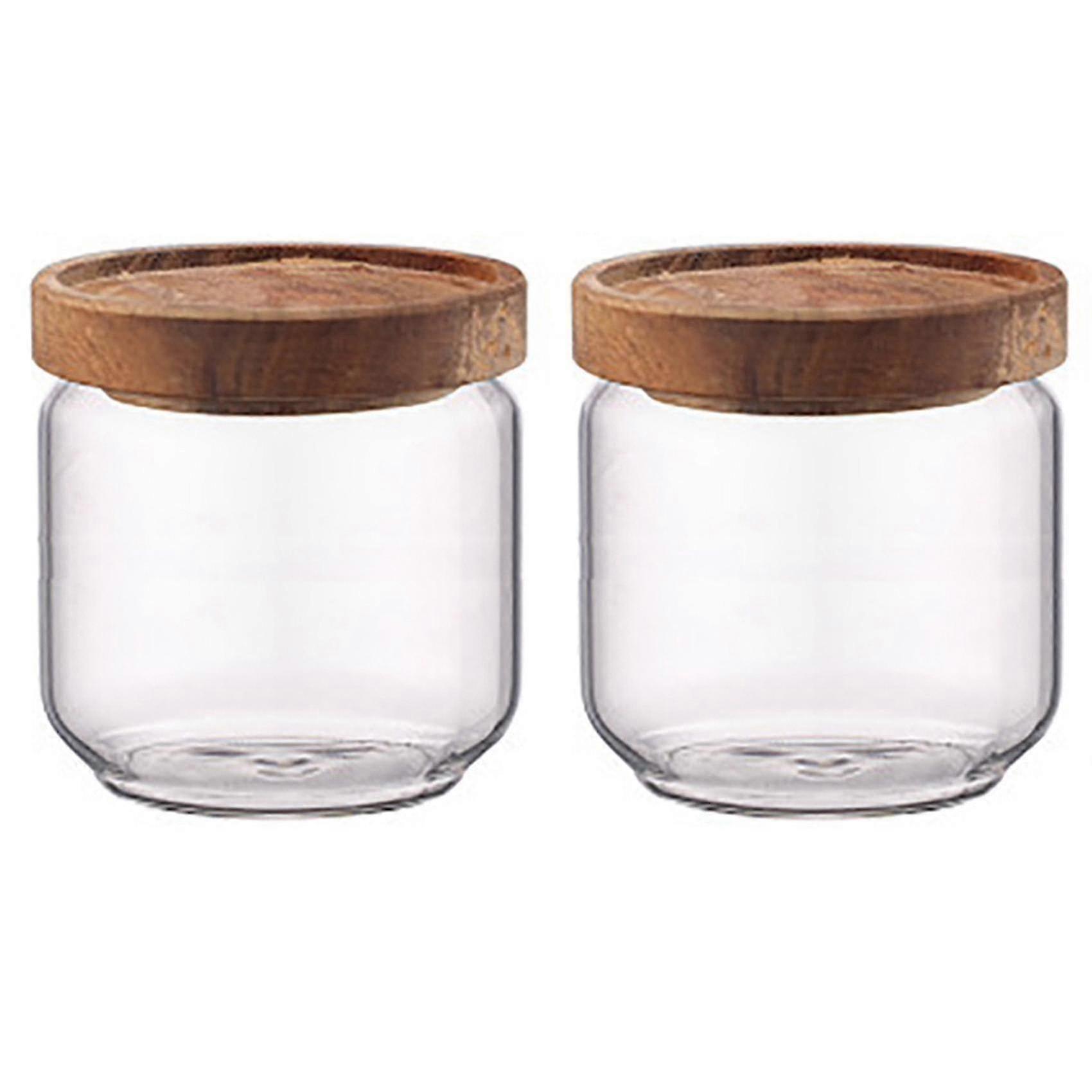 2x 400ml Wood Lid Glass Airtight Canisters - Kitchen Storage Jars for Grains, Tea, Spices