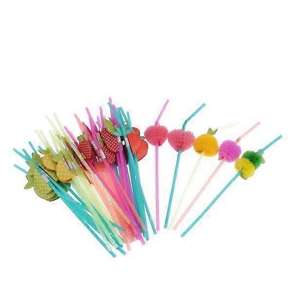 2x 50pcs Colorful Plastic Straws Bendable Drinking Straw with Ornaments