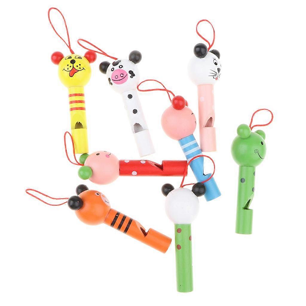 2x 8 Pieces Wooden Whistle with Cartoon Animals Head Sound Toy for Babies Children