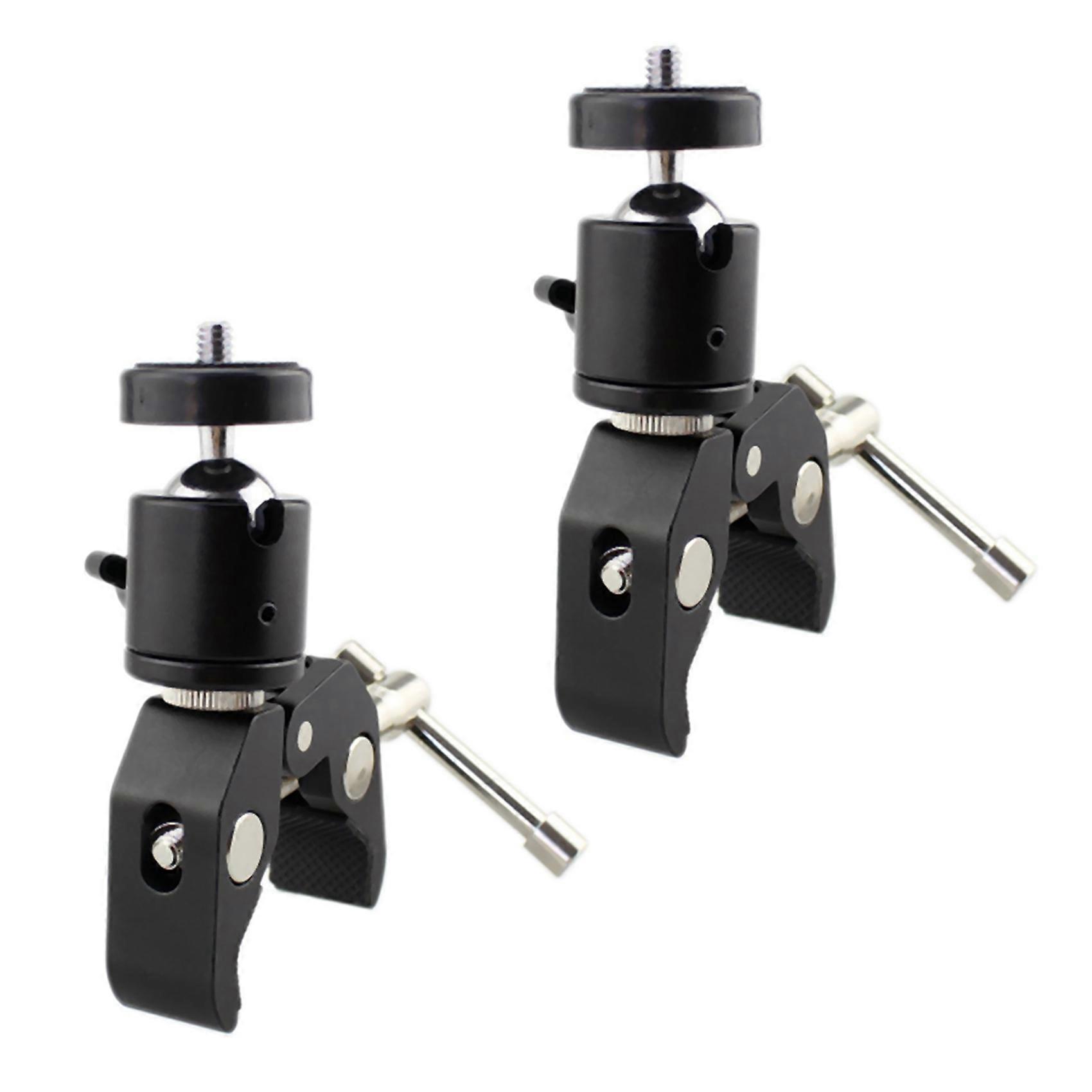 Comes with standard hot shoe mount with 360 degree swivel articulation ball head for easy direction. 1/4inch -20 tripod threaded screw on top to attach video monitors, small led lights and dslr cameras such as for , , , , Panasonnic, & . Comes with solid mini super clamp with Max open() 2.16 inches,It holds tight and can mount virtually everywhere you need like 15mm rods, hooks, shelves, plate glass, bars. Can be detachable to use as a single ball arm and a super clamp. With 1/4 inch-20 and 3/8inch -16 thread on super clamp body for setting up other configurations. Type: Camera Ball Head Compatibility: Universal Colour:black Material:Aluminum alloy Package Contents: 2 x Camera Ball Mount Only the above package content, other products are not included. Note: Light and different displays may cause the color of the item in the picture a little different from the real thing. The measurement allowed error is +/- 1-3cm.