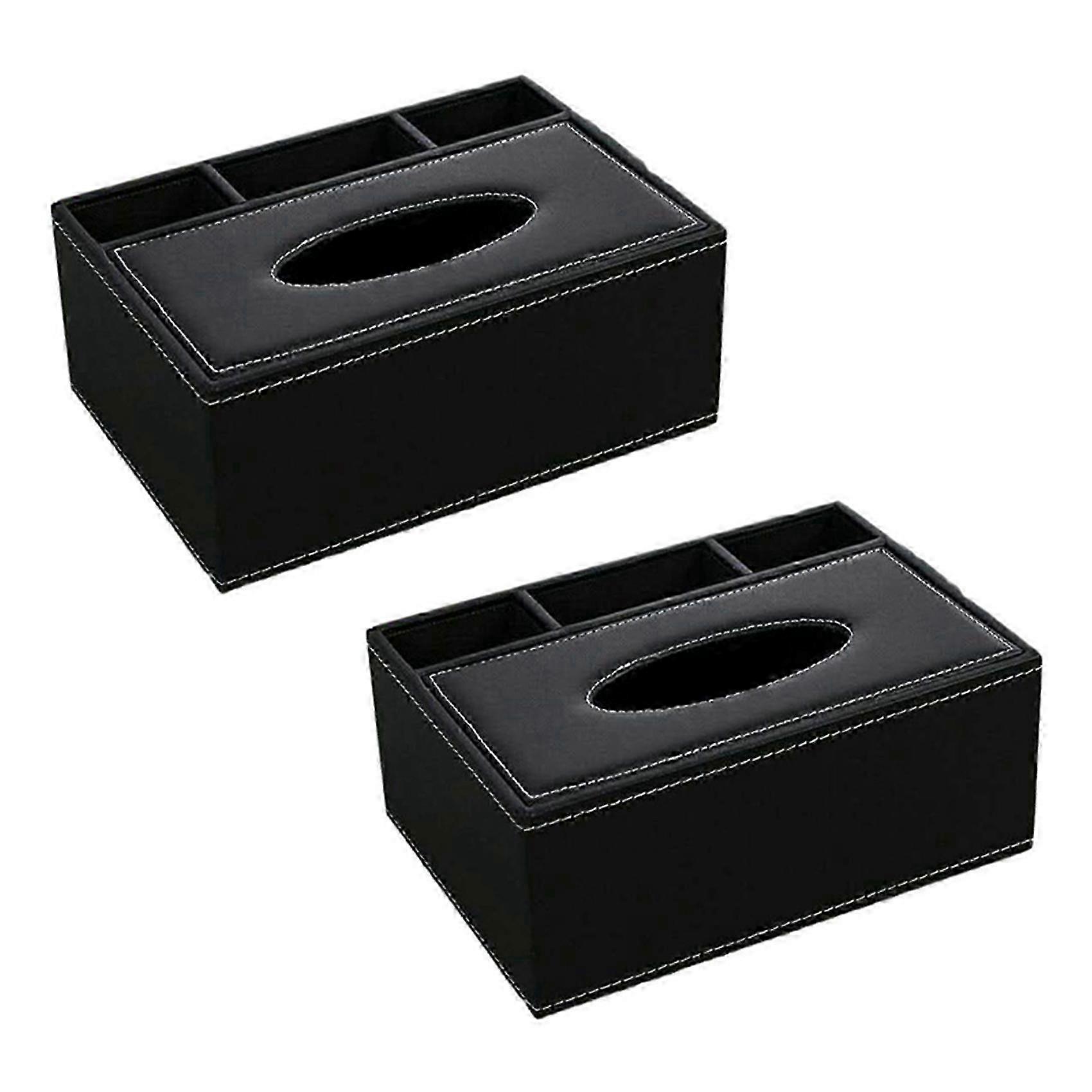 2X PU Tissue Box & Remote Control Holder - Multi-Functional Desktop Organizer for Pencil & Scissor Storage